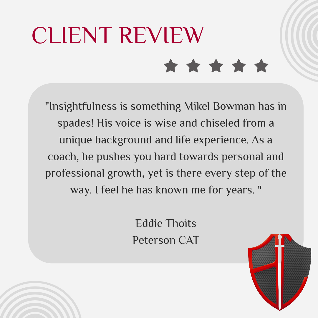 "Earlier this week I had the wonderful opportunity to have a one on one conversation with Mikel Bowman. I would like to let everyone know that Mikel's insights and down to earth approach are truly a godsend. One of the things that I respect about this man and the way that he helps is that he listens! He doesn't jump right in immediately knowing his way is right, but he takes the time to hear a client express what may be the issue and then offers up strategies for consideration. I've listened to other life coaches and inspirational people but sometimes it can be hard to take from a suit and tie on a stage when the audience is wearing Carhartts. He speaks the truth without speaking down. I am humbled to write this recommendation because whatever I say is going to fall short. Thank you Brother! "